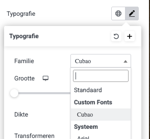 Wanneer je daarna in Elementor de typografie instellingen opent, zal je het nieuwe lettertype kunnen selecteren.